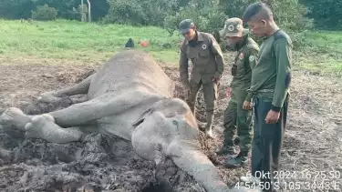 Lampung Timur, tvOnenews.com - Seekor gajah sumatera liar (Elephas maximus sumatrensis) ditemukan tewas di kawasan hutan Taman Nasional Way Kambas (TNWK), Kabupaten Lampung Timur, Minggu (6/10/2024).