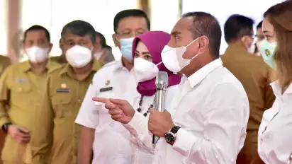 Hal itu disampaikan Gubernur Edy Rahmayadi saat memimpin rapat koordinasi dalam rangka kesiapan Rumah Sakit di Sumut dalam lonjakan kasus Covid-19 dan evaluasi Pembelajaran Tatap Muka (PTM) di Sumut, di Aula Tengku Rizal Nurdin, Rumah Dinas Gubernur, Jalan Jenderal Sudirman Nomor 41, Medan, Senin (7/2/2022).