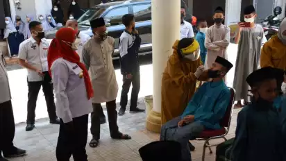 Bandar Lampung, Lampung - Satuan Tugas (Satgas) Covid-19 Kota Bandar Lampung melakukan Rapid Tes Antigen massal di Pondok Pesantren Yatim Piatu dan Duafa Tahfidzul Qur'an Riyadhus Sholihin di Jalan Dr Harun II, Kelurahan Kotabaru, Kecamatan Tanjungkarang Timur, Bandar Lampung. Dari 144 orang pengurus maupun santri di pondok pesantren tersebut, lima orang dinyatakan reaktif Covid-19, yaitu salah seorang Ustadz bersama istri, dan tiga orang santri.