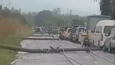Tiang listrik yang tumbang tersebut melintang ke badan jalan lintas Bireuen-Takengon itu mengakibatkan terjadinya kemacetan pajang di kawasan tersebut.