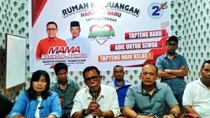 tvOnenews.com - Ketua Tim Kampanye Pasangan Calon (Paslon) Bupati Tapanuli Tengah (Tapteng) Masinton Pasaribu-Mahmud Effendi Lubis (MAMA) nomor urut 02, Sarma Hutajulu mengatakan, hasil sementara real count yang dibuat oleh timnya, MAMA menang di 17 kecamatan, sedangkan 3 kecamatan lainnya dimenangkan oleh paslon nomor urut 01, Khairul Kiyedi Pasaribu-Darwin Sitompul (KEDAN).