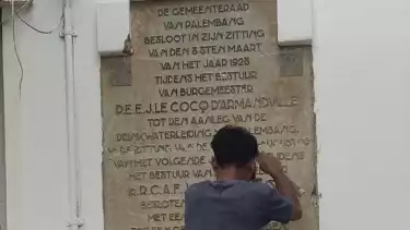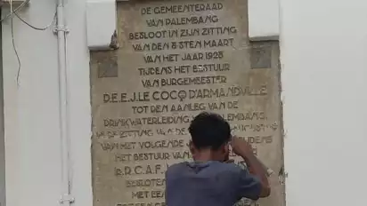Berusia 96 Tahun Prasasti Kantor Ledeng Buatan Belanda Ditemukan di Kantor Wali Kota Palembang