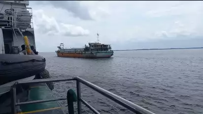"Kami menghentikan kegiatan penambangan pasir ilegal dan berhasil mengamankan satu Kapal tongkang KNB-6 bersama semua abknya disinyalir digunakan untuk mengangkut hasil penambangan pasir laut di perairan Pulau Rupat yang dilakukan PT LMU,” kata Adin Nurawaludin saat meninjau tkp bersama sejumlah awak media di perairan Rupat Kabupaten Bengkalis - Riau, Senin (14/2/2022).