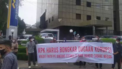 Medan, Sumut - Dugaan korupsi kredit fiktif yang terjadi sejak 2011 hingga 2018. Puluhan mahasiswa yang tergabung dalam Pergerakan Mahasiswa Anti Korupsi (PERMAK), Siang tadi (21/02/2022) menggruduk kantor Bank Mandiri Cabang Medan di Jalan Imam Bonjol Kota medan. Ini merupakan aksi lanjutan usai dilaporkannya kasus tersebut ke Komisi Pemberantasan Korupsi (KPK). Dugaan korupsi kredit fiktif ke PT. Bintang Cosmos, rugikan negara senilai Rp 188 miliar .