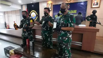 “Jumlahnya 6.750 botol, jadi modusnya mereka mengganti nama kapal untuk mengelabui petugas,” ujar Laksma Dwika, saat menggelar Press Release di Mako Lantamal IV, Selasa (23/2/2022).