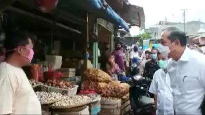 Bandar Lampung, Lampung - Menteri Perdagangan RI, Muhammad Lutfi melakukan sidak ke Pasar Pasir Gintung, Tanjung Karang Pusat pada Kamis (24/2/2022) siang. Kedatangan Menteri Perdagangan ini untuk memastikan permasalah minyak goreng dan kacang kedelai di Provinsi Lampung dapat diatasi.