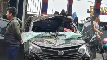 "Kita dibantu warga evakuasi pohon yang menimpa mobil, dan sudah kita pinggirkan pohonnya ke tepi agar arus lalu lintas kembali normal," terangnya.