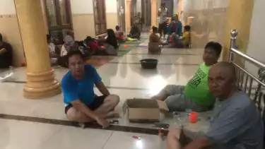Medan, Sumatera Utara - Puluhan warga yang menjadi korban banjir di Jalan Bajak III, Kelurahan Harjosari II, Kecamatan Medan Amplas, Sumatera Utara, Minggu, (27/2/2022) malam, mulai mengungsi Masjid Baiturrahman.