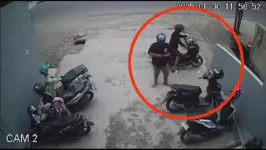 Medan, tvOnenews.com - Dua orang pria terekam kamera pengawas CCTV sedang mencuri satu unit sepeda motor Honda Beat, dari parkiran.