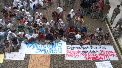 "Sistem buruk. Penipu, penjahat paling busuk adalah penjahat merusak masa depan bangsa. Kami gak layak eligible? Situ layak jadi guru? Tanggung jawab," tulis siswa di spanduk kritikannya.