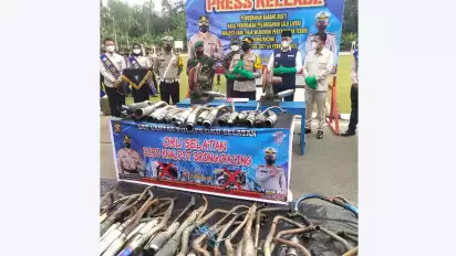 Dalam pemusnahan tersebut disaksikan langsung oleh Wakil Bupati Sholehien Abuasir SP, MSi, DPRD, Kajari dan Dandim 0304 dimusnahkan dengan cara di gerinda, dalam ‘press release’, di Mapolres OKU Selatan Selasa (1/3/2022).