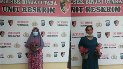 Binjai, Sumatera Utara - Diduga mencuri bunga jenis agronema, dua orang ibu rumah tangga, AFN, warga jalan Medan Binjai, Kelurahan Tunggurono, Kecamatan Binjai Timur, Kota Binjai, Sumatera Utara, yang berperan sebagai pelaku yg mengambil Bunga hias di TKP, dan pelaku berinisial M, warga jalan Binjai, Desa Sei Semayang, Kecamatan Sunggal, Kabupaten Deli Serdang, yang berperan sebagai pembeli, diamankan Polsek Binjai Utara, Kota Binjai.