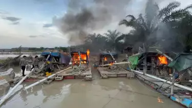 Tambang Ilegal Digerebek Polisi, 22 Rakit Penambang Dibakar Petugas