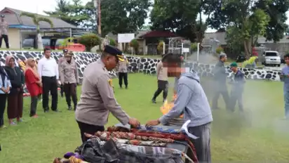 "Kami juga memusnahkan barang bukti seperti sarung yang sudah disiapkan untuk senjata perang sarung," ujarnya. (Ant/wna)