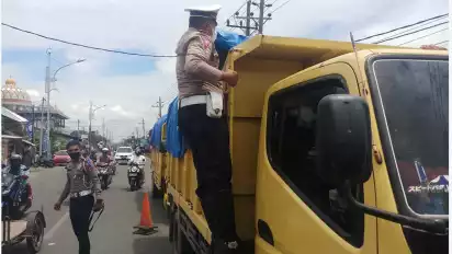 "Lima truk ini melanggar aturan karena masuk jalur kota yang ramai penduduk, sehingga petugas langsung menghentikan demi keselamatan orang banyak," sebut Iptu Sugeng kepada awak media. Pada Selasa (8/3/2022).
