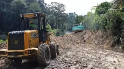 Taput, tvOnenews.com - Pasca gempa berkekuatan Magnitudo 5, 5 yang mengguncang Kabupaten Tapanuli Utara (Taput), Sumatera Utara (Sumut), pemerintah daerah melakukan penanggulangan daerah terdampak dengan mengerahkan alat berat membersihkan material tanah yang runtuh menutupi badan jalan.