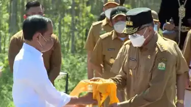 Balikpapan - Gubernur Aceh, Ir Nova Iriansyah MT bersama Gubernur se Indonesia melakukan tabur tanah dan percik air dari daerah masing-masing di lokasi calon Ibu Kota Nusantara (IKN), Senin, 14 Maret 2022. Prosesi itu dipimpin langsung Presiden RI Joko Widodo.