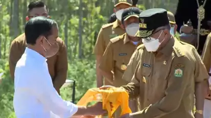 Balikpapan - Gubernur Aceh, Ir Nova Iriansyah MT bersama Gubernur se Indonesia melakukan tabur tanah dan percik air dari daerah masing-masing di lokasi calon Ibu Kota Nusantara (IKN), Senin, 14 Maret 2022. Prosesi itu dipimpin langsung Presiden RI Joko Widodo.Â