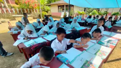 Gempa Susulan Masih Terasa di Pasaman Barat, Siswa SDN di Talamau Belajar Beratapkan Terpal