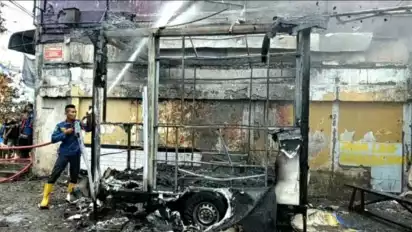 "Awalnya api kecil, aku bilang itu asap, sudah pasti dibakar sama orang gila. Terus api membesar dan kami siram. Ada sampah dan sofa di dalam," ungkap pemilik Laundry Milala bernama Ginting.