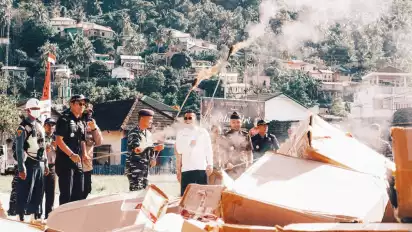 Anambas, tvOnenews.com - Bea Cukai Tanjungpinang memusnahkan 2.522.368 batang rokok ilegal tanpa pita cukai hasil penindakan Satuan Lanal Tarempa. Kegiatan pemusnahan berlangsung di Lapangan Sepakbola Sulaiman Abdullah, Tarempa, Kabupaten Kepulauan Anambas, Kepri, Selasa (20/5/2025).