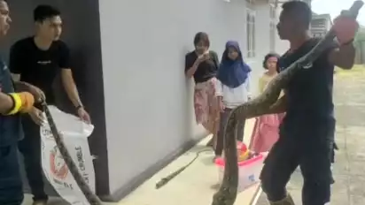 Ular Python 4 Meter Serang Petugas Saat Ingin Ditangkap