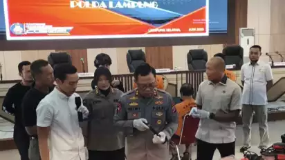 “Dalam ungkap kasus tindak pidana kepemilikan senjata api secara ilegal, termasuk perakitan dan modifikasi senjata api serta kepemilikan amunisi tanpa izin, kami juga mengamankan tiga orang tersangka," kata Kapolda Lampung Irjen. Pol Helmy Santika saat konferensi pers di Mapolda Lampung, Kamis (26/6/2025).