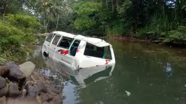 Mini Bus Terjun ke Sungai, Enam Orang Terluka