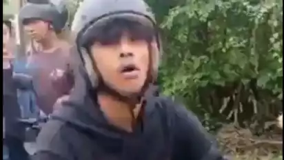 "Kenapa rupanya kalo knalpot racing, kenapa, ngapai kau video-video, Girsang ini, biar tahu kau!" bentak remaja pengendara motor knalpot racing tersebut.