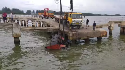 Sebelumnya, truk pengangkut sembako dan barang elektronik tujuan Pulau Sinabang, Kabupaten Simeulue, terjun ke dalam laut di Pelabuhan Penyeberangan Meulaboh di Kecamatan Samatiga, Aceh Barat, pada Rabu (5/4/2022) menjelang siang.