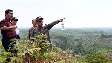 tvOnenews.com - Bupati Tapanuli Tengah (Tapteng), Masinton Pasaribu meninjau kawasan hutan produksi terbatas yang sudah beralih fungsi menjadi lahan perkebunan sawit di wilayah Desa Aek Raso, Kecamatan Sorkam Barat, Kabupaten Tapteng, Sumatra Utara (Sumut), Rabu (30/07/2025).