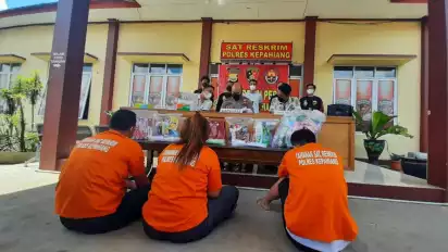 Kepahiang, Bengkulu - Tiga orang komplotan spesialis pencurian minimarket yang beraksi di wilayah kabupaten Kepahiang berhasil diringkus polisi. Satu dari tiga tersangka ini adalah perempuan, berinisial SU (20) seorang Ibu Rumah Tangga kemudian PA (39) yang tak lain adalah suami SU, serta HE (34).
