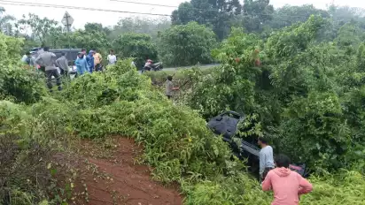 Lepas Roda Depan Saat Melaju, Carry Pick Up Nyungsep ke Jurang