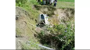 Simalungun, Sumut - Satu unit minibus Toyota Avanza Nopol BK 1737 ZV yang ditumpangi enam orang rombongan ASN dari Dinas Provini Sumatera Utara masuk jurang, di lokasi jalan Lintas Sumatera, Pematangsiantar - Saribudolok, Kelurahan Panei Tongah, Kecamatan, Panei, Kabupaten Simalungun, Sumatera Utara, Rabu (20/4/22).