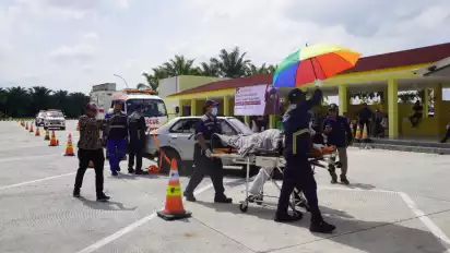 Simulasi menitikberatkan pada evakuasi korban dalam keadaan mobil terbalik dan lainnya akibat kecelakaan serta membutuhkan penanganan cepat.