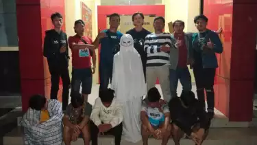 Lebong, Bengkulu - Enam remaja di Kabupaten Lebong, Bengkulu ditangkap polisi lantaran membuat panik warga sekitar. Mereka menggunakan kostum layaknya hantu pocong melakukan aksinya di tempat pemakaman umum (TPU) Desa Talang Ulu, Kecamatan Lebong Utara.