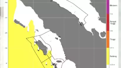 Medan, tvOnenews.com - Prakirawan Stasiun Meteorologi Kelas II Maritim Belawan Christen Ordain Novena Marpaung mengatakan sejumlah perairan di Sumatera Utara (Sumut) masih berpotensi dilanda gelombang tinggi 1,25 hingga 2,5 meter pada 6 hingga 9 Oktober 2025.