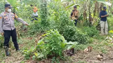 Personel Satreskrim Polres OKU Selatan Evakuasi Kerangka Manusia di Kebun Pisang