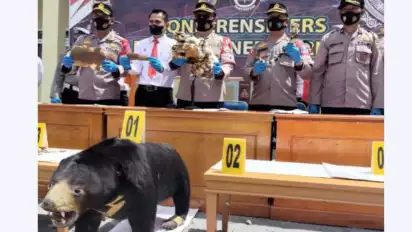 "Setelah mendapatkan informasi dari warga, tim langsung bergerak lokasi, saat digrebek, para pelaku sedang melakukan transaksi opsetan beruang madu dan satu lembar kulit harimau dan sisik trenggiling,” kata Kapolres.