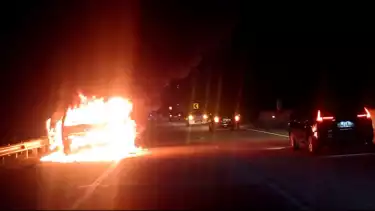 Bandar Lampung, Lampung - Diduga korsleting listrik, satu unit kendaraan minibus terbakar yang mengangkut pemudik di Jalan Tol Trans Sumatera (JTTS) Kilometer 18 ruas tol Bakauheni-Terbanggi Besar (Bakter), pada Sabtu (30/4/2022) sekira pukul 21.00 WIB. Minibus itu diduga kendaraan travel yang membawa pemudik dari Jawa Barat menuju Kabupaten Pringsewu, Lampung.