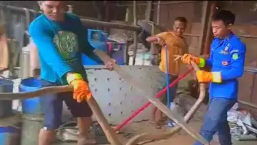 Menurut pemilik tempat barang rongsokan, ia mengaku hendak menyusun kembali barang bekas tersebut dan tiba-tiba melihat ular besar dari bawah tumpukan karung.