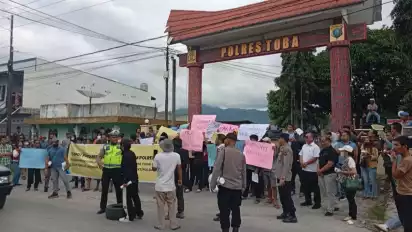 tvOnenews.com - Puluhan warga Kabupaten Toba, Sumatera Utara melakukan aksi unjuk rasa damai di depan kantor Polres Kabupaten Toba, Selasa (16/12/2025). Kedatangan puluhan warga ini dengan membawa berbagai poster dan spanduk meminta Kapolres Kabupaten Toba dan Kasat Reskrim untuk segera di copot oleh Bapak Kapolda Sumatera Utara.