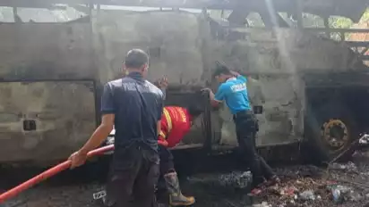 "Terjadi kebakaran 1 unit Bus di ruas jalan lintas sumatera tepatnya di Nagari Tanjung Lolo yaitu mobil ALS nopol DK 7815 LC rute Medan-Surabaya dengan penumpang sekitar 46 sopir dan sopir kernet 4 orang," ujar Kapolres Sijunjung AKBP Muhammad Ikhwan.
