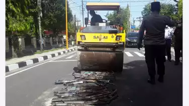 "Terkait dengan hal tersebut, kami menindaklanjuti dengan melakukan beberapa tindakan, salah satunya dengan melakukan razia dan mengamankan knalpot blong, saat  ini kita melakukan pemusnahan knalpot blong yang tujuannya untuk memberikan efek jera kepada masyarakat sehingga tidak lagi menggunakan knalpot blong yang sejatinya bisa memberikan rasa ketidaknyamanan pada masyarakat," kata AKBP Taryono Raharja.