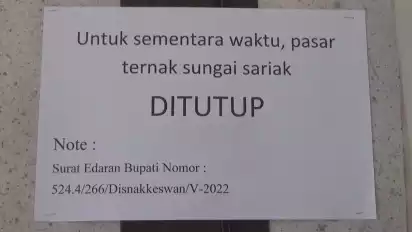 Kepala Dinas Peternakan Kabupaten Padang Pariaman Bustanul Arifin mengungkapkan, enam lokasi pasar ternak yang ditutup adalah Pasar Ternak Sungai sariak, Pasar Ternak Pakandangan, Pasar Ternak Sungai Garinggiang, Pasar Ternak Sungai Limau. Bustanul mengaku untuk hari ini pasar masih ditutup 50 persen, namun pada Rabu depan semua pasar akan ditutup total.