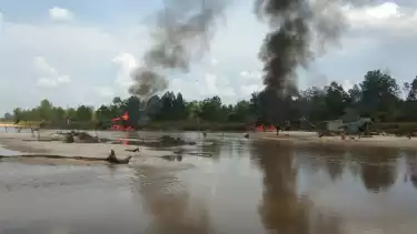 Tebo, Jambi - Polisi kembali mengrebek lokasi Penambangan Emas Tanpa Izin (PETI) di Muara Sungai Sikubu tepatnya di Desa Teluk Kayu Putih, Kecamatan VII Koto, Kabupaten Tebo, Jambi. Saat polisi datang, belasan penambang lari kocar kacir memasuki hutan yang berada di sekitar lokasi tambang.