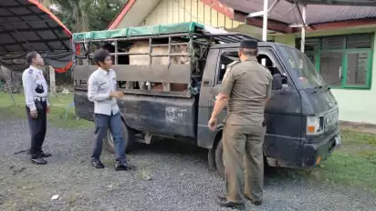 Sejak posko terpadu pengawasan bersama pemasukan hewan ternak di wilayah perbatasan Sungai Serik, Jalan Lintas Barat Bengkulu - Sumatera Barat kurang lebih 90 kendaraan dengan membawa serta hewan ternak yang akan masuk dihadang petugas dan diminta untuk putar kembali ke wilayah asal. (Rgo/Lno)