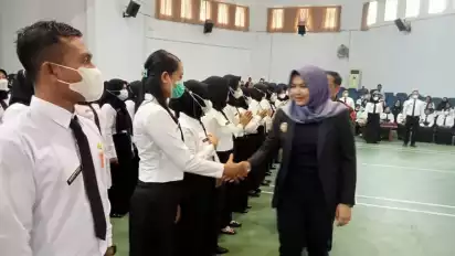 Mandailing Natal, Sumatera Utara - Ratusan tenaga honorer di lingkungan Pemerintah Kabupaten Mandailing Natal (Madina), Sumatera Utara, Kamis (9/6/2022) resmi diangkat menjadi Pegawai Pemerintah dengan Perjanjian Kerja atau P3K. Surat Keputusan (SK) pengangkatan pegawai tersebut diserahkan langsung oleh Wakil Bupati Madina, Atika Azmi Utammi.