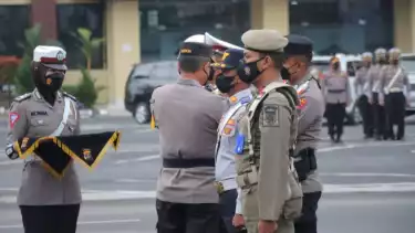 Bandar Lampung, Lampung - Direktorat Lalu Lintas Polda Lampung, melaksanakan apel gelar pasukan Operasi Krakatau 2022, dalam rangka Cipkon Kamseltibcarlantas jelang hari Bhayangkara Tahun 2022, pada masa pandemi Covid-19, dengan tema, "Tertib Berlalu Lintas Menyelamatkan Anak Bangsa", di Lapangan Markas Polda Lampung, pada Senin (13/06/2022).