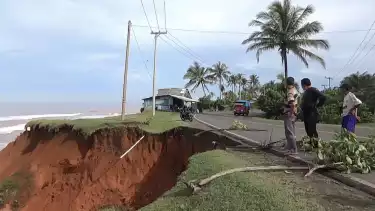 "Masih ada beberapa titik lagi jalan yang juga terancam amblas ke laut, karena posisi jalan berada disepanjang pantai yang curam," kata Andian.